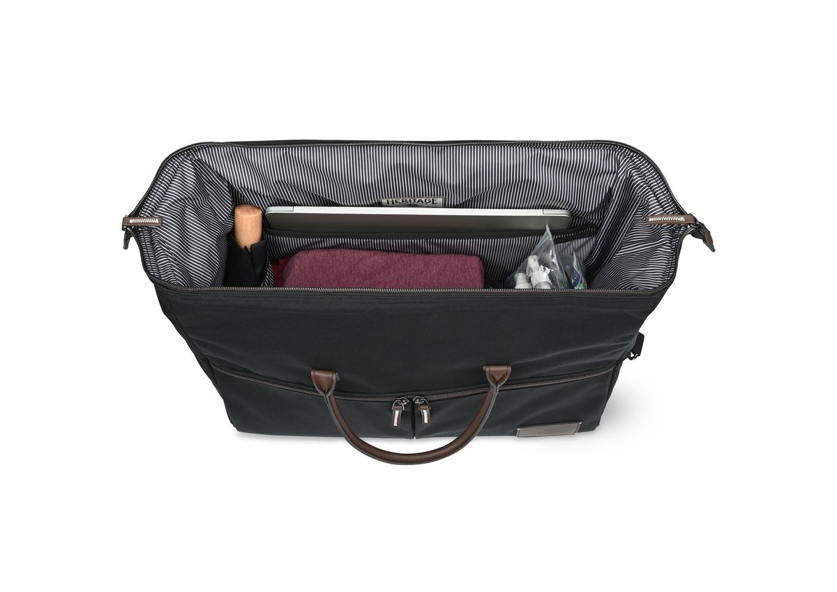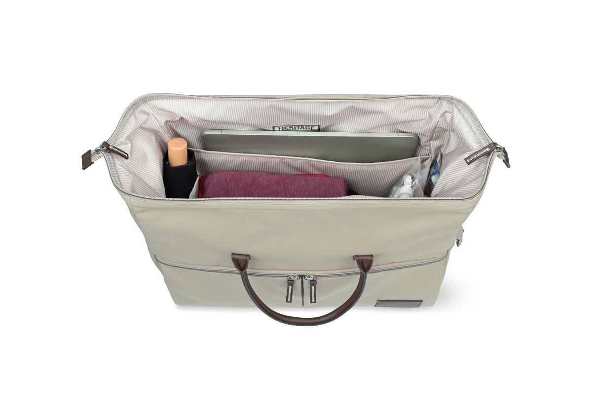 The Heritage Supply Co.™ Legacy Travel Weekender blends timeless craftsmanship with modern functionality. Designed from durable recycled materials, it offers smart organization for 1–3 days away, including a laptop sleeve and structured, wire-frame opening for easy packing. With vegan leather accents, signature hickory stripe lining, and thoughtful travel-ready details, it’s built for every journey in style.